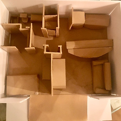 The final project of this course was an individual assigment completed and presented at home because of COVID. It appropriately centered around considering the effects of COVID-19 on the structure and design of spaces. I began this project researching scholarly articles related to this topic and found a thought-provoking article that reported the ways in which apartment renter preferences had changed because of the pandemic. Some of these features included increased office space, an in-unit washer and dryer, a more generous balcony, and a kitchen with a countertop bar for expanded seating to accommodate the heightened frequency of in-home dining. After summarizing this article (can be referenced by clicking the pdf attachment above), I selected an apartment layout and proceeded to design a revised layout that was constructed using poster board and foam board in a manner that accommodated the space to these COVID-influenced renter preferences.